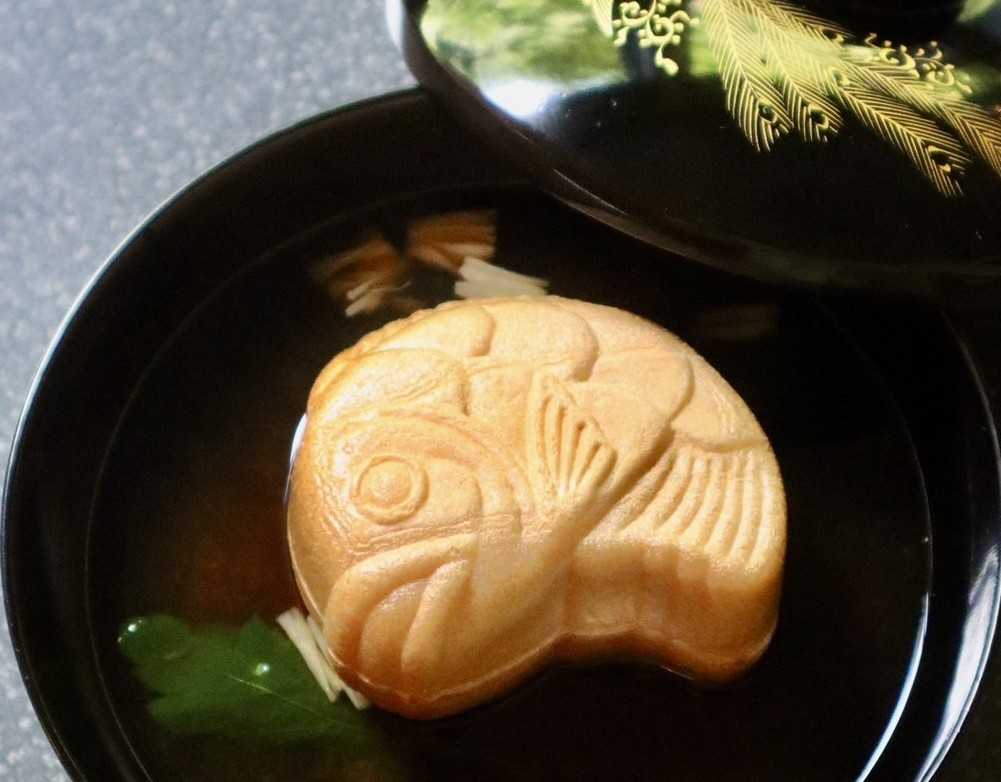 名物の鯛ごはんを美味しく召し上がれるおかずを揃えました。だし巻き玉子に小田原のかまぼこやわさび漬け、デザートには京都のお菓子もついた充実のお弁当です。